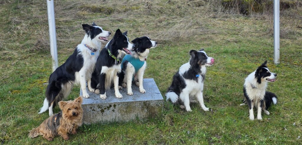 Thorsten mit Xayvion, Ariane mit Finnegan, Paula mit Luke, Sophia mit Maggie und Christa mit Picco